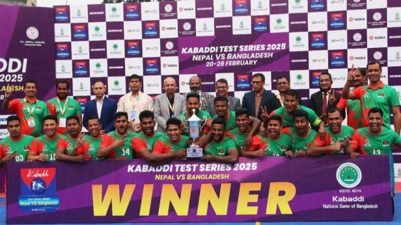 বাংলার প্রতিচ্ছবি : বাংলাদেশের জাতীয় খেলা কাবাডি। সেটা যে এমনি এমনি নয় সেটাই এবার টের পেয়েছে নেপাল। কাবাডিতে বাংলাদেশের বিপক্ষে পাত্তাই পায়নি সফরকারী নেপাল। পাঁচ ম্যাচের সিরিজ লাল-সবুজের দল জিতে নিয়েছে ৪-১ ব্যবধানে। শেষ ম্যাচে নেপাল হেরেছে ৪৫-২৭ পয়েন্টের ব্যবধানে।