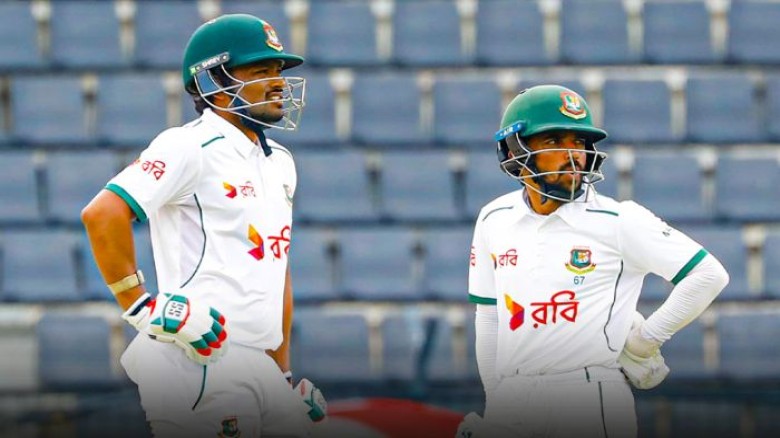 বাংলার প্রতিচ্ছবি : সংক্ষিপ্ত স্কোর: বাংলাদেশ প্রথম ইনিংসে ২৮ ওভারে ৯০/৩ (মুশফিক ২০*, শান্ত ২৫*; এনামুল ০, সাদমান ১৪, মুমিনুল ২৯)