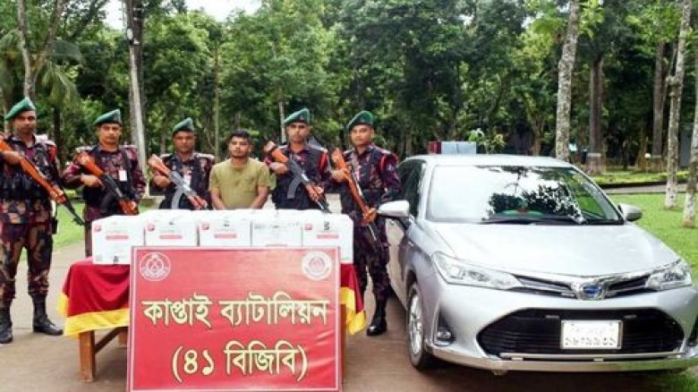 কাপ্তাই থানা পুলিশ ও বিজিবি জানায়, সোমবার দুপুর সোয়া ১২টার দিকে গোয়েন্দা তথ্যের ভিত্তিতে কাপ্তাই ওয়াগ্গা ব্যাটালিয়ন ৪১ বিজিবির অধিনায়ক লে. কর্নেল কাওসার মেহেদীর নির্দেশনায় নায়েব সুবেদার মো. মাসুদ রানার নেতৃত্বে ব্যাটালিয়নের ১ নম্বর জিপি গেইট সংলগ্ন চেক পোস্টে একটি তল্লাশি অভিযান পরিচালনা করা হয়। এ সময় অবৈধভাবে গাড়িযোগে পাচারকালে ৪৪৯০ প্যাকেট প্যাট্রোন (UAE) সিগারেট, ১টি আইফোন, ১টি স্যামসাং মোবাইল ও টয়োটা গাড়িসহ হুমায়ন কবীর চৌধুরী হিরুকে আটক করা হয়।