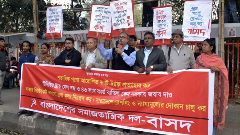 সোমবার (১৩ জানুয়ারি) জাতীয় প্রেস ক্লাবের সামনে বাংলাদেশের সমাজতান্ত্রিক দলের (বাসদ) ঢাকা মহানগর শাখার উদ্যোগে আয়োজিত সমাবেশে তিনি এসব কথা বলেন। শতাধিক পণ্যে শুল্ক-করারোপ, টিসিবির ট্রাক সেল বন্ধ, ৪৩ লাখ পরিবারের ফ্যামিলি কার্ড বাতিলের সিদ্ধান্ত প্রত্যাহার এবং গ্রাম-শহরে শ্রমজীবীদের জন্য রেশন ও ন্যায্য মূল্যের দোকান চালুর দাবিতে এই সমাবেশ আয়োজন করে বাসদ।