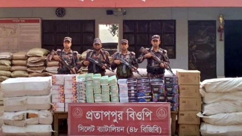 বিজিবি জানায়, বুধবার সিলেট ব্যাটালিয়নের (৪৮ বিজিবি) দায়িত্বাধীন সিলেট জেলার গোয়াইনঘাট উপজেলার সীমান্তবর্তী এলাকায় অভিযান চালানো হয়। অভিযানে বিপুল পরিমাণে ভারতীয় শাড়ি, লেহেঙ্গা, থান কাপড়, বিভিন্ন প্রকার কসমেটিকস, ট্যাং, বাসমতি চাল, জিরা, চিনি, কমলা, পোস্ত দানা, কাজুবাদাম এবং কিসমিস আটক করে। আটককৃত মালামালের আনুমানিক সিজার মূল্য ১২ কোটি টাকা।