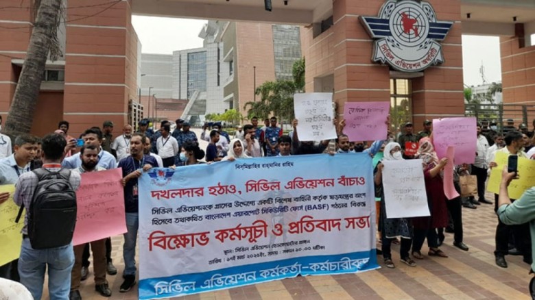 বাংলার প্রতিচ্ছবি : বাংলাদেশ এয়ারপোর্ট সিকিউরিটি ফোর্স গঠনের প্রস্তাব বাতিল ও বেসামরিক বিমান চলাচল কর্তৃপক্ষের এভিয়েশন সিকিউরিটি বিভাগের স্বার্থ সংরক্ষণের দাবিতে বিক্ষোভ মিছিল করেছেন বেবিচকের কর্মকর্তা-কর্মচারীরা।