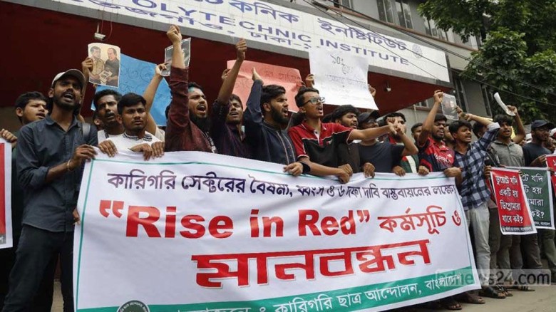 বাংলার প্রতিচ্ছবি : শিক্ষা মন্ত্রণালয়ের কারিগরি ও মাদ্রাসা শিক্ষা বিভাগের কর্মকর্তাদের আশ্বাসে সাময়িকভাবে কর্মসূচি স্থগিতের ঘোষণা দিয়েছেন পলিটেকনিক শিক্ষার্থীরা। তবে ছয় দাবি বাস্তবায়নের রূপরেখা প্রণয়নে শিক্ষা মন্ত্রণালয়ের গঠিত কমিটির ওপর ‘ভরসা রাখতে না পারায়’ সিদ্ধান্ত পালটে আবার আন্দোলনে ফিরেছেন পলিটেকনিক শিক্ষার্থীরা।