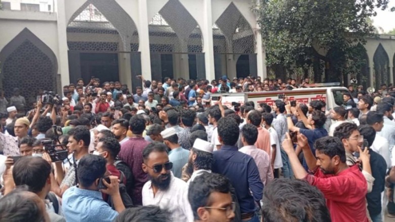 বাংলার প্রতিচ্ছবি : সোহরাওয়ার্দী উদ্যানে দুর্বৃত্তের ছুরিকাঘাতে নিহত ঢাকা বিশ্ববিদ্যালয়ের শিক্ষার্থী ও ছাত্রদল নেতা শাহরিয়ার সাম্যর (২৫) প্রথম জানাজা অনুষ্ঠিত হয়েছে।