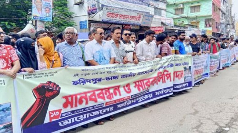 রোববার (১৩ জুলাই) বেলা ১১ টা থেকে দুপুর সাড়ে ১২ টা পর্যন্ত ফরিদপুর প্রেসক্লাবের সামনে “ভাঙ্গা-ফরিদপুর চারলেন দ্রুত বাস্তবায়ন” কমিটির উদ্যোগে এ মানববন্ধন অনুষ্ঠিত হয়।